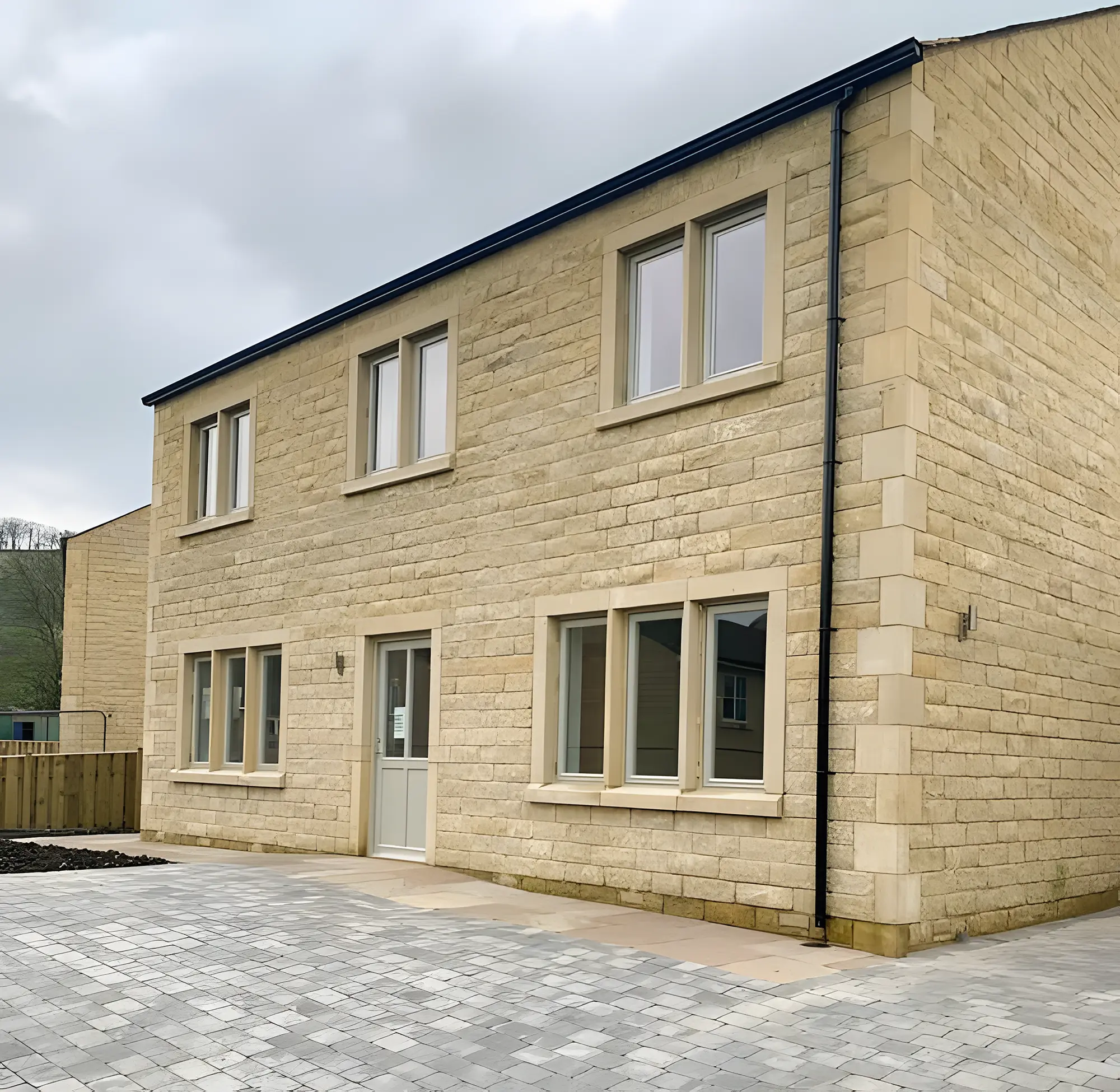 Heads and cills have been cut and sawn from large blocks of stone to create interest and architectural detail on window and door apertures. They are smooth in appearance with the option to add multiple masonry details such as chamfering, weathering etc.