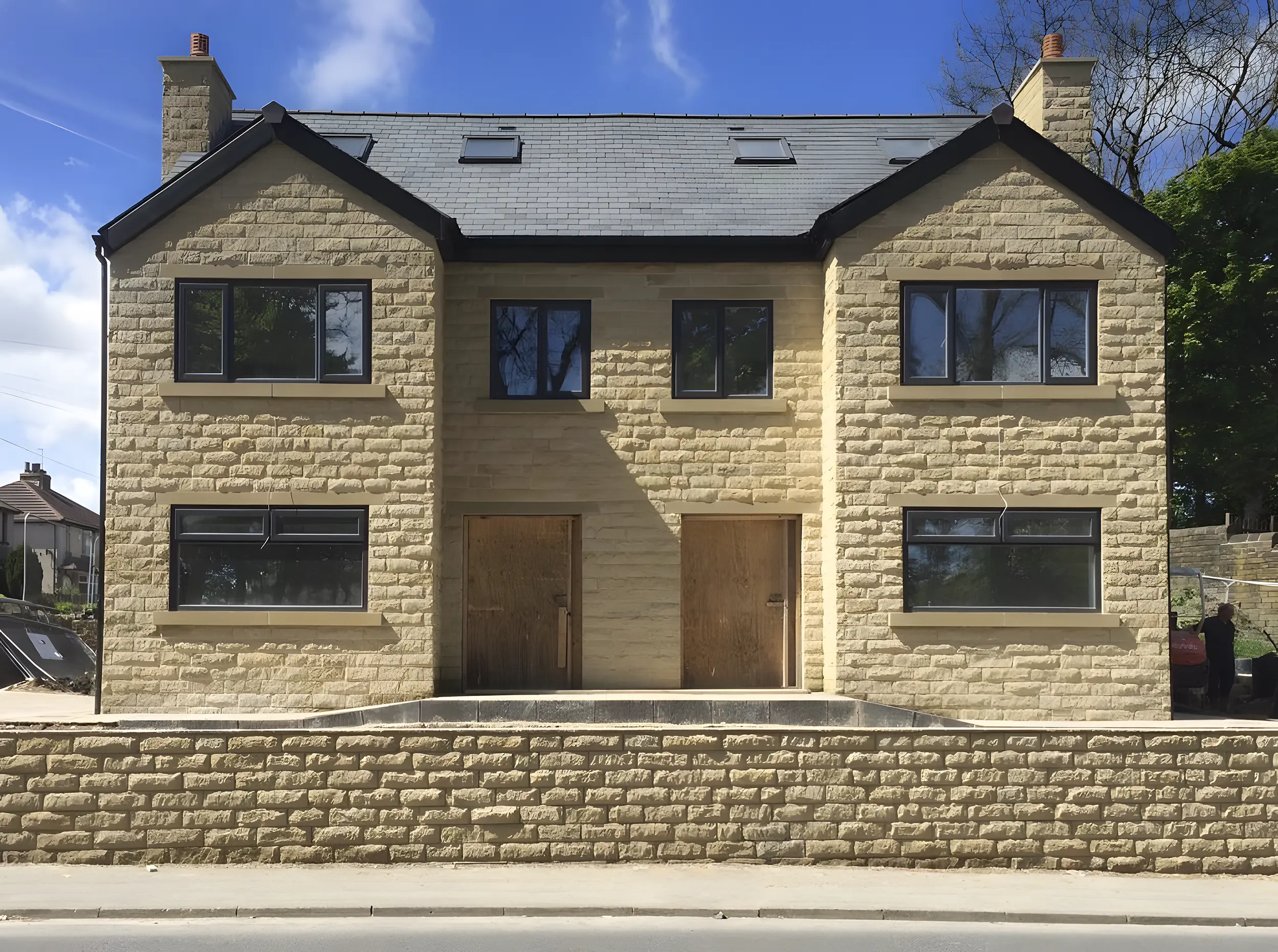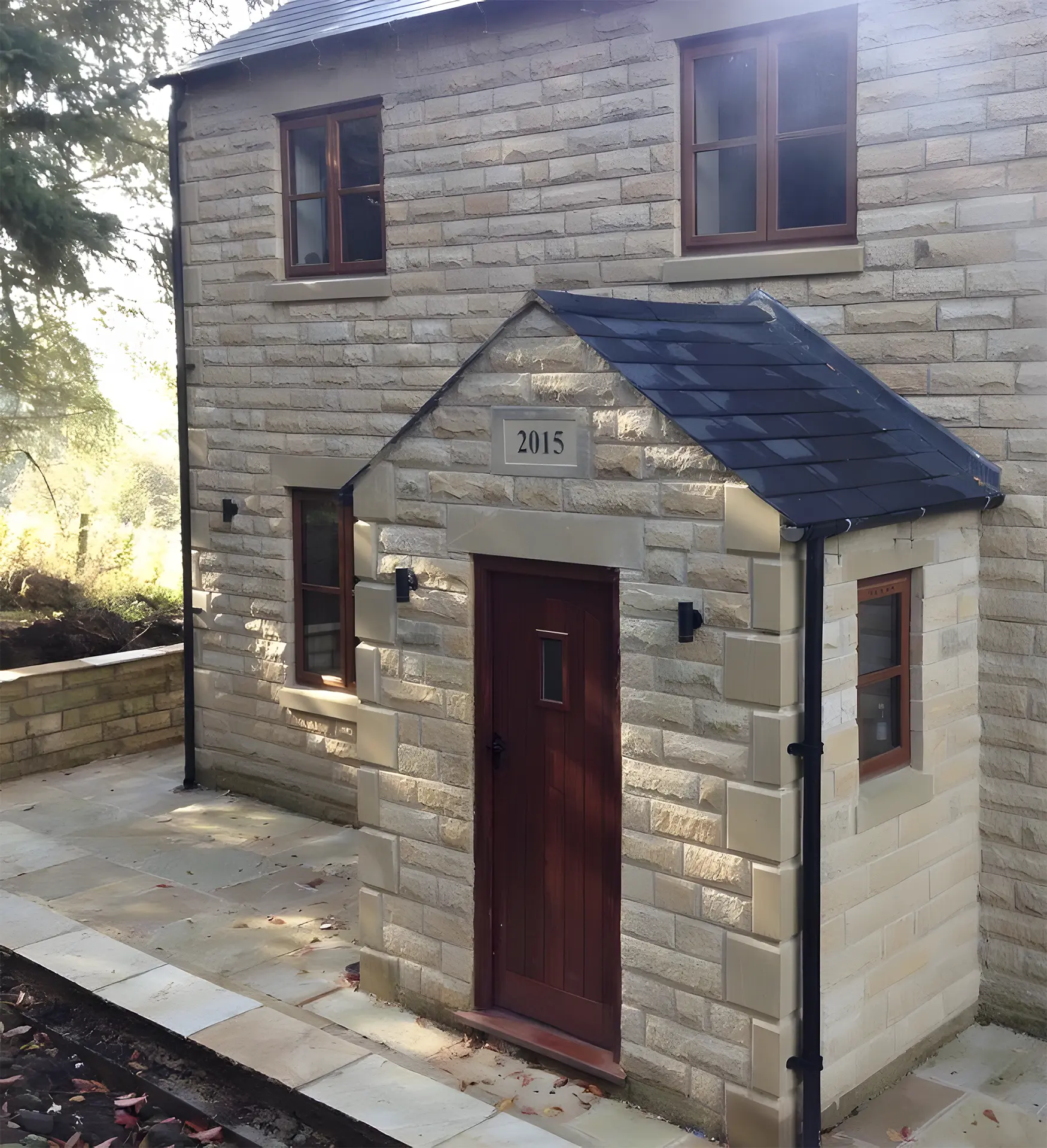 Pitched Faced is a traditional dressed stone finish and is a popular choice throughout the construction industry. It has a pitch on each side of the face, creating a raised centre on each individual stone.