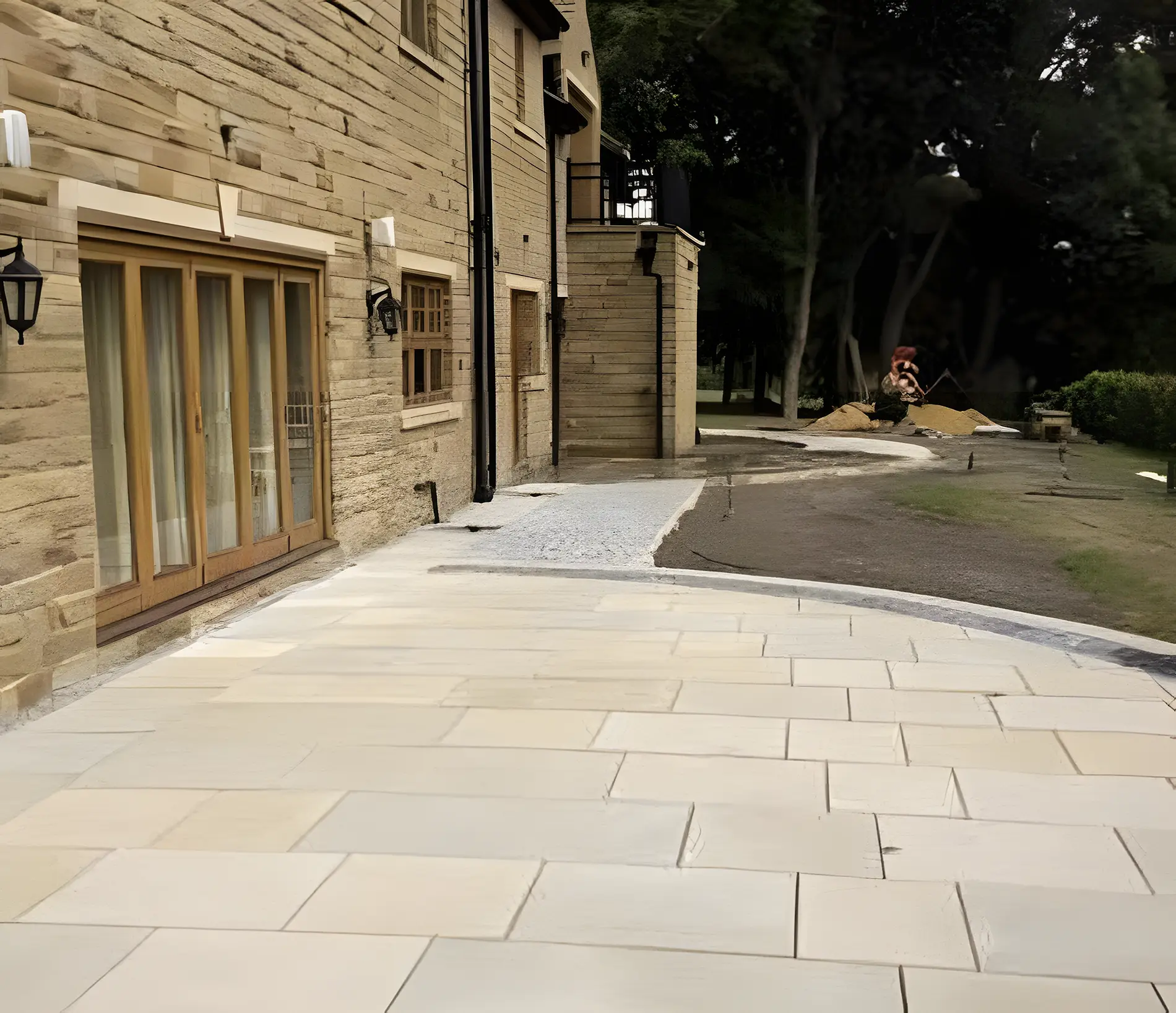 Sawn paving refers to paving slabs that are machine-cut on all six sides, resulting in a smooth, straight, and calibrated finish. This process creates perfectly square or rectangular slabs with uniform thickness. Sawn paving is a popular choice for patios, driveways and terraces due to it’s clean lines and ease of installation. The appearance and texture of Sawn Paving lends itself well to anywhere that require a durable, smooth finish.